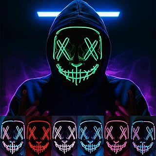 KaTiSeMo Halloween Mask LED Light up Mask, Halloween Purge Mask with 3 Lighting Modes & El Wire, Scary Scream Mask for Festival Cosplay Halloween Costume Masquerade Parties, Cosplay, Carnival, Gifts
