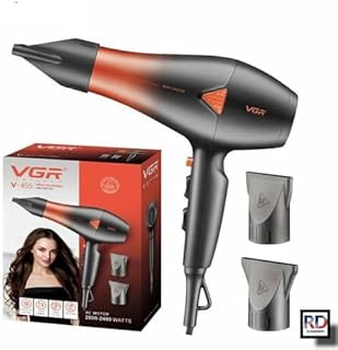 مجفف شعر احترافي V-455 بقوة عالية وتقنيات عناية متقدمة – تصميم خفيف وصوت هادئ مع سرعات ودرجات حرارة متعددة لتصفيف دقيق وصالوني (اسود - احمر)