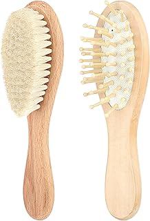 2 Pcs Soft Baby Brush, Baby Hair Brush Set Ultra-Soft Goat Bristles and Massage Bristles Cradle Cap Care & Scalp Massage for Newborns, Toddlers