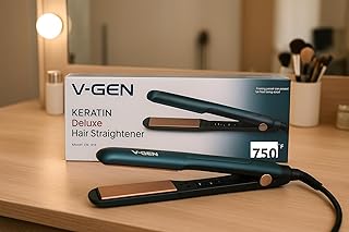 v-3en Hair Straightener for Salon Quality Styling with Heat Up to 750°C, Perfect for Curly and Straight Hair, 30 Seconds Fast Heating, 50W, Ceramic Plates with 4 Temperature Levels