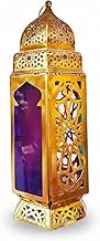 فانوس على الطراز المغربي بلون ذهبي مقاس كبير مع حلقه دهبى ، زجاج ارجواني من الجانب مزخرف من الجانب الإآخر خمات عليه الجوده