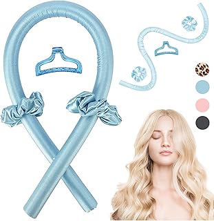 Nistere No Heat Curlers Heatless Curling Rod Headband DIY Heatless Hair Curlers For Women & Girls Long Hair Tik Tok Style Overnight Sleep Flexi Rods With Hair Claw Clip(Blue)