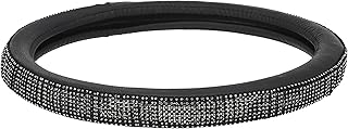 JIMENG Universal Diamond Steering Wheel Cover for Women Girls 15" Rhinestone Crystal Steering Wheel Covers Bling Car Wheel Protector (Black)