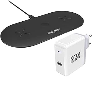 Energizer Wireless Dual Fast charge pad 30w + 45W PD Charger + USB-C to USB-C Cable Black