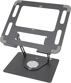 KM Technology Stand Desktop Foldable 360 Rotatable Tablet, Laptop & Adjustable Angle & Height Base Rotation & Aluminum Alloy Holder For Mobile, Tablet, Laptop UP To 17 inch & 20.0 KG - Grey