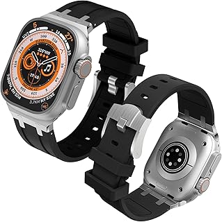 Sport Liquid Silicone Rubber Band with Stainless Steel Adapter for Apple Watch Ultra 1/2 49mm 45mm 44mm 42mm for Men, Durable Replacement Strap for iWatch Ultra 1/2, AP Rubber Watch Band for Watch