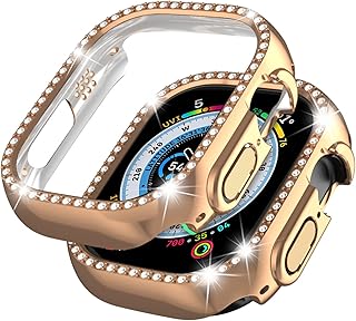 Miimall Compatible with Apple Watch Ultra 49mm Bling Case for Women, Hard PC Frame Bumper without Screen Protector, Crystal Diamonds Shell Ultra Slim Protective Cover for iWatch Ultra 49mm-Rose Gold