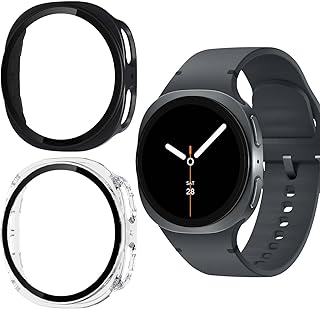 2 Pieces Case for Samsung Galaxy Watch 8 44 mm, Anti-scratch: Protective Case with Screen Protector Frame PC + Screen Protector Cover – Black + Transparent