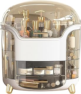 Cosmetic Box, 360 Rotating Large Capacity Makeup Brush Storage Box for Home, Cosmetic Organizer Acrylic Dust Free, Transparent Vertical Makeup Organizer for Vanity (White)