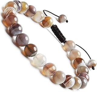 M.A.S 8MM Natural Gemstone Energy Bracelets for Unisex, Braided Rope Semi Precious Crystal Quartz, Stress Relief Healing Reiki Macrame, 8mm, Gemstone, persian gulf agate