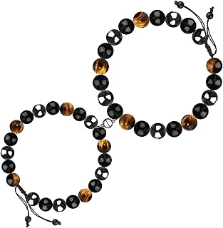 PAWALT Triple Protection Bracelet - Hematite - Tiger Eye - Black Obsidian - Nature Stone Couple Bracelet for Men/Women, Bring Luck Health