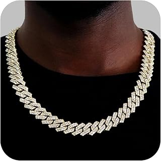KKJTDS Miami Cuban Link Chain for Men 14mm Diamond Iced Out Cuban Link Chain Necklace Bracelet Hip Hop Jewelry Mens Women, Zinc, Rhinestone