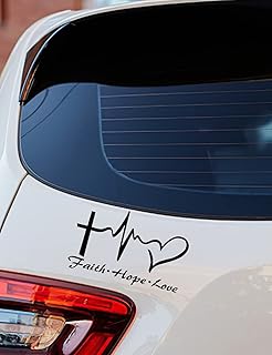 Hope Faith Love Heart Car Decal Stickers, Jesus Cross Vinyl Sticker for Car Windows, Tablets, Laptops, Water Bottles (Black)
