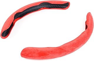 Carbon Fiber Anti-Skid Steering Wheel Cover Protector, 2 Pcs Segmented Steering Wheel, Durable, Easy to Install - Red