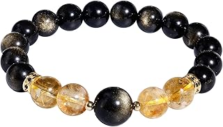Jewever Black Obsidian with Citrine Beaded Bracelet for Women Men Bring Lucky Wealth Prosperity Healing Crystals and Gemstones Mens Bracelet 10mm