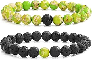MengPa Mens Beaded Bracelets Couples Matching Bracelet Set Lava Rock Beads for Women Stone Jewelry Green King Stone Beads US4163M
