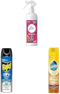 Glade air freshener Wild Berries 460ML + Raid Flying insect killer odorless 300ML + Pledge furniture polish original 300ML