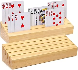 plusvivo Card Holders for Playing Cards (Set of 2), Wooden Playing Card Holder Rack Stand for Go Fish/ Canasta/ Pinochle/ Bridge/ Hand and Foot, Perfect for Small-Hands and Arthritic