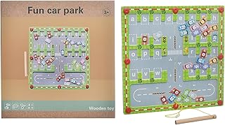 Megahertz Wooden Board Fun Car Park Maze Game with Magnetic Pen for Kids +3 - Multi Colour