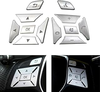 Priprilod Steering Wheel Button Silver Trim Cover Compatible with Mercedes Benz W204 C 2012 2013 2014 2015 2016
