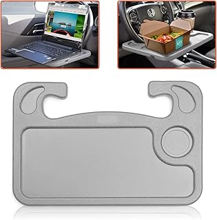 Trobo Steering Wheel Desk, Car Table for Writing, Laptop, Tablet Or iPad with Pen Slot, Food Eating Tray with Cup Holder, Hooks On Most Vehicle Steering Wheels, Car Accessories for Travelers, Grey