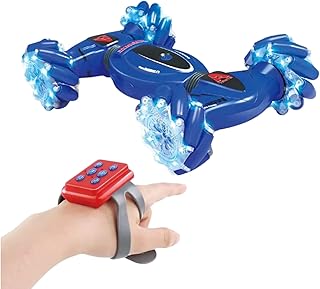 سيارة تحكم عن بعد مع ساعة تحكم، سيارة متسلقة مع عجلات LED، أزرق، للأطفال 6 سنوات فما فوق