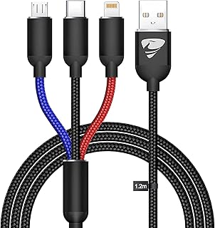 Aioneus 3 in 1 Nylon Braided USB Cable, 4ft Multi Charging Cable with Lightning, Type C, Micro USB Ports, Compatible with iPhone/Samsung Galaxy/Huawei/iPad and More