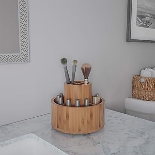 Lavish Home Rotating Organizer – Eco-Friendly Tabletop Compact Modern Natural Bamboo Carousel for Makeup, Office Supplies, Art Brushes and Crafts