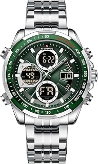 NAVIFORCE 9197S S-S-GN Analog Digital Waterproof Wristwatch Quartz Calendar Clock New Mens Business Stainless Steel Watches