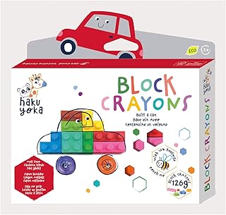 Avenir Haku Yoka 6303083 Block Wax Crayons Set, Car, Wax Crayons in Bright Colours, Wax Crayons in Clamping Block Shape, No Staining, for Children from 3 Years