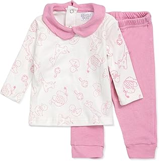 lovely land Baby Girls white shirt with all over print and pink pants Pajama Set (pack of 1)