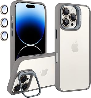 Dl3 Mobilak for iPhone 16 Pro 6.3-Inch Clear Case with Kickstand, Built-in Camera Ring Stand, with Lens Protector Cover, Shockproof Hard PC Back Soft TPU Frame Slim Case - Titanium