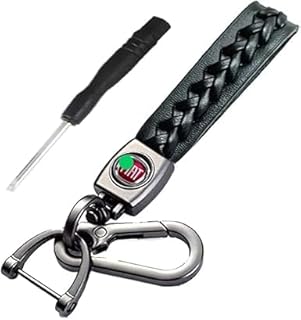 High Quality Braided Leather Car Keychain Medallion - Compatible with Fiat Logo, Black