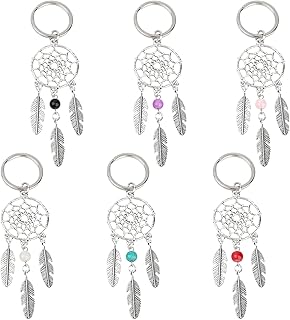 Azure Zone, 6 Pack Mini Dream Catcher Keychains Handmade Key Ring for Key Bag Ornaments Accessories Silver
