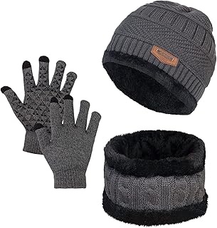 3 PCS Beanie Hat Gloves Scarf for Women and Men Oversize Winter Beanie,Warm Fleece Lined Touchscreen Gloves Hat Scarf Set, Gray