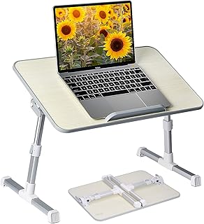 Neetto Adjustable Laptop Bed Table, Foldable Breakfast Tray, Portable Lap Standing Desk, Notebook Stand Reading Holder for Couch Sofa Floor Kids (Honeydew) - Standard Size