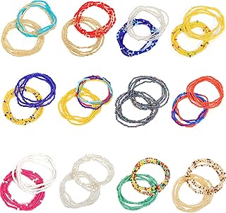 24 Pieces Elastic Waist Bead Chains Summer Body Chains Colorful Belly Beads African Bikini Jewelry Chains for Women and Girls