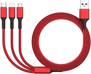 Multi Charging Cable 3 in 1 Nylon Braided Multi USB Cable Multiple Charger Fast Charging Cord Compatible with Most Smart Phones & Pads (Red)