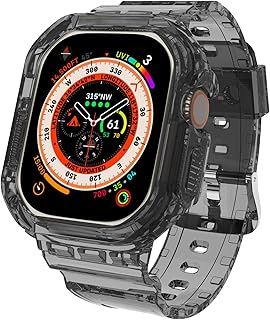 Goton for Apple Watch Ultra 2 Band 49mm, Apple Watch Ultra 49mm Band with Protective Bumper Case, Crystal Clear Soft Sports Wristband Strap Accessories for iWatch Ultra 49mm, Transparent Black