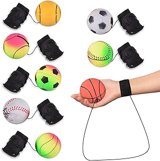 NICEWAT Pack of 8 Jumping Balls with Cord, Multicoloured Wrist Ball with Cord and High Stretch, Diameter 6 cm Wrist Return Ball, Sports Toy for Children Adults