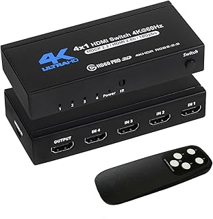 4K HDMI Switch 4x1, 4K@60Hz 4 in 1 Out HDMI Switcher Selector with IR Remote Control, Supports HDCP 2.2 4K@60Hz UltraHD HDR10 3D HD1080P Dolby DST, HDMI Splitter for PS4 Xbox Apple TV Fire Stick