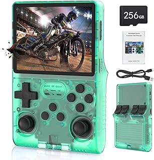 FHYRGF[30000 in 1 R40S PRO Handheld Game Console 3.5 inch IPS Screen Mini Retro Console 3800mAh Portable Pocket Arcade 45+ Mainstream Emulator 256G TF Card Transparent.(Green)