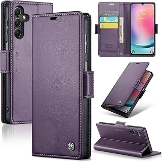 Phone Case Compatible with Samsung Galaxy A24 Case, Premium PU Leather Flip Case Cover with Card Holder Slot Compatible with Samsung Galaxy A24 (Purple)
