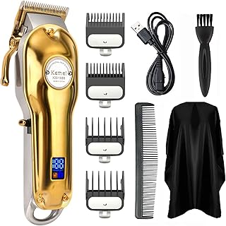 Kemei Golden Cordless Hair Clipper Professional Hair Clippers Hair Trimmer for Men for Stylists and Barbers Full Metal Housing Hair Clipper USB Charge (Golden)
