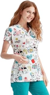 First Aid Hospital Medical Scrub printed Hospital Medical Scrub unisex-dental - Surgical scrubTop only -Short Sleevs - Doctor Scrub -Medical Uniform (BLUE, Size XS)