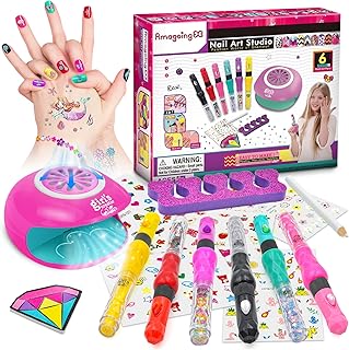 Amagoing Nail Art Studio for Girls, Nail Polish Kit for Kids Age 6-12 Year Old, 3 in 1 Nail Polish Pen, Nail Dryer, Fashion Stickers, Glitter, Decoration Supplies, Makeup Gift for Birthday, Girly Spa
