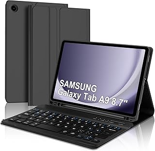 JADEMALL Keyboard Case for Samsung Galaxy Tab A9 8.7'', Detachable Wireless Bluetooth Keyboard with Case and Pen Holder for Samsung Galaxy Tab A9 8.7 Inch 2023 (SM-X110/X115/X117), Black