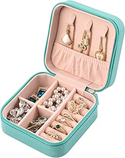 Small Jewelry Box,Small Travel Jewelry Organizer,Zipper small Jewelry Box,Mini Jewelry Travel Case,Portable Display Storage Box,Jewelry Case for Women Girls-Blue