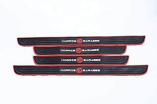 4Pcs Car Door Sill Protector,Silicone fiber leather Door Sill Sticker, Reflective Automotive Door Entry Guard, Decoration Door Sill Scuff Plate - black*red - (MG)
