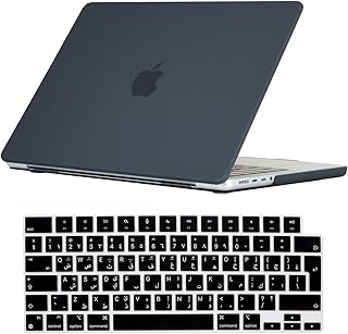Se7enline Compatible With MacBook Pro 14 Inch Case 2023 2022 2021 Frosted Hard Shell Laptop Cover for Mac 14-inch Model A2779 A2442 M2 M1 Pro/Max & Arabic Keyboard Skin (UAE Layout), Black